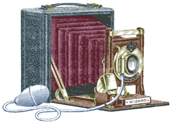 The Cycle Wizard was manufactured by the Manhattan Optical Co. in circa 1899. Designed as a compact camera for tourists and cyclists. Constructed of a mahogany box, leather covered. The lens was a rapid rectillinear with a new wizard automatic shutter featuring various speeds and finger and pnematic release. The front was rising, faling and side swing with a brilliant finder for focusing.