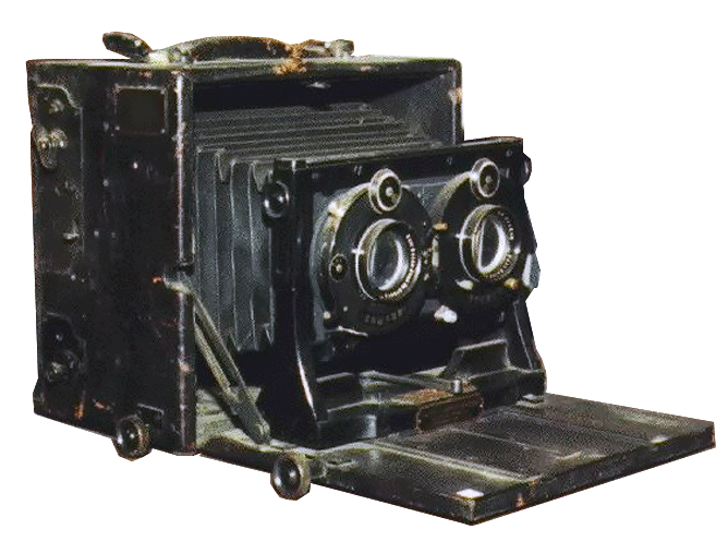 The Stereoscopic Graphic Camera was manufactured by the Folmer and Schwing Company from approximately 1902 to 1921. Quality constructed of select kiln dried mahogany, Highly finished can covered with the best black grained leather with all metal parts oxidized in gun metal finish.