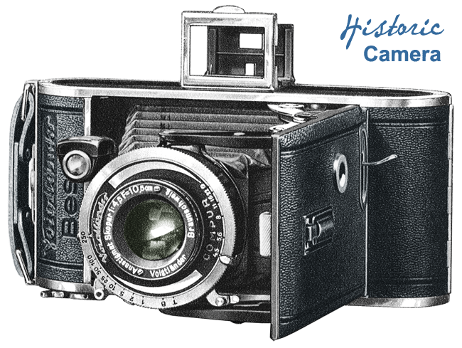 The Bessa Camera began production in 1929 by the Voigtlander AG LTd. company. Several models were produced. The early version described here is easily recognized by the pop-up direct view frame finder. This versions production ended in approximately 1938. A well made folding camera that was moderately priced with a several lens and shutter options. The camera was constructed of an aluminum body and covered in leather with nickel plated and black enamel metal parts. It was advertised with a feature of two in one with a half-size mask. The camera took exposures 3 1/4 x 2 1/4 inches. It featured a brilliant finder in addition to the frame finder. It was fitted with a Voigtar, Vaskar, Skopar, or Color Skopar lens, in increasing quality and cost. There were also three shutter options, a Prontor, Compur, and Compur Rapid.