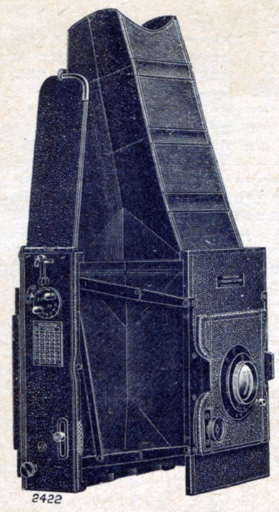 Description: The Houghton folding reflex camera embodies a new principle in camera construction. Hitherto the principal objection to a reflex camera has been the bulk of the instrument. The folding reflex entirely overcomes that objection and it portability will commend it to the majority of camera users. In it we retain all the advantages of the highest type full view reflecting camera combined with the convenience of folding flat for carrying.
