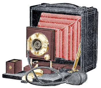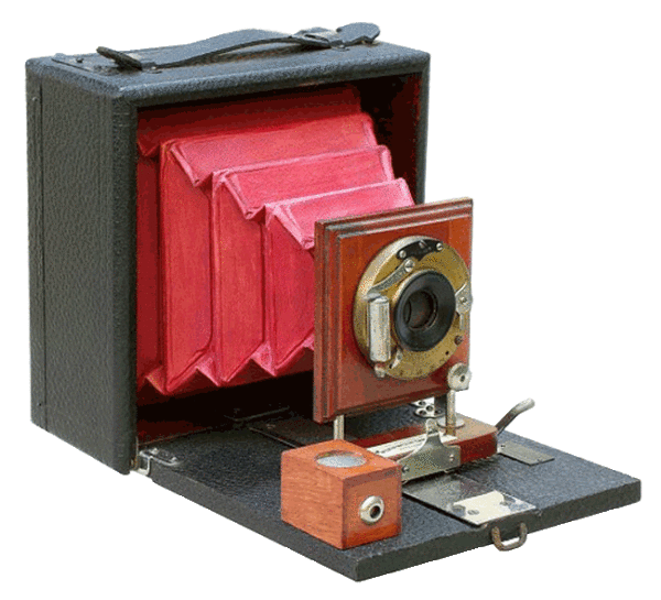 The No. 6 Onondaga camera was manufactured by the Wilkin-Welsh Camera company in circa 1901. The No. 6 was described as being practical, durable instruments, built with care by experienced workmen. The camera was constructed of polished mahogany. The bed was either covered in seal-grain covering or was polished mahogany. The outside was covered in black seal-grain covering. The metal work was nickel plated and highly polished. The front has rising and falling movement for regulating the amount of sky and foreground. The back is reversible and is fitted with spring actuated ground glass frame, which resides to allow the plate holder to be inserted. It is fitted with a superior achro-meniscus lens and the latest self-timing automatic shutter, which has time, bulb and instantaneous exposures, with bulb and finger release. The brilliant view finder is also reversible for convenience when taking snap shots. Originally priced at $10.00 for the camera and one plate holder. The camera fitted with an optional rectilinear lens cost $12.50.