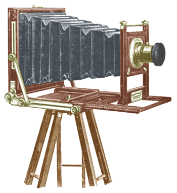 The London Stereographic & Photographic Co. Ltd sold the "Special", Wide Angle and Long Extension Camera in circa 1900. It was designed to meet the requirements of the most advanced amateurs for field or home use. Constructed of the best and most seasoned wood available. The bellows were made of morocco leather lined with cloth. Features included a risng and falling front, double extesnion bellows, rack and pinion adjustment, double swing back, reversible frame for vertical or horizontal pictures. Recommended with a Black Band Rapid Rectilinear lens with iris diaphragm, so separately. The camera was made in various sizes including, 4 1/4 x 3 1/4 inches or quarter plate, 5 x 4 inches, 6 1/2 x 4 3/4 inches (half plate), 7 1/2 x 5 inches, 8 1/2 x 6 1/2 inches (whole plate), 10 x 8 inches, 12 x 10 inches, 15 x 12 inches. Prices ranged from £7 7s to £21.