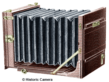 The Technical Camera, square model was designed by the London Stereoscopic Company in circa 1905 for those photographers needing a strong apparatus for hard wear and extreme tropical climates. Intended to be used for portraiture, architecture, landscape and telephoto work. Made in four sizes, a 6 1/2 x 4 3/4 inch, 8 1/2 x 6 1/2 inch whole plate, 10 x 8 inch and a 12 x 10 inch. Prices ranged from £10 15s to £19 10s. Optional hardware included a Black Band Rapid Rectilinear lens with iris diaphragm, a wide angle Goerz double Anastigmat series III lens, Thornton-Picakard instantaneous shutter, brass binding, and a three-fold tripod and a solid leather case.