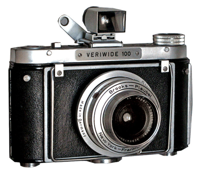 The Veriwide camera was manufactured by the Plaubel company of of Frankfurt Germany beginning in 1959. It was designed as a wide angle camera having 100 degree angle of view and capable of capturing 6 x 9 cm exposures on roll film.