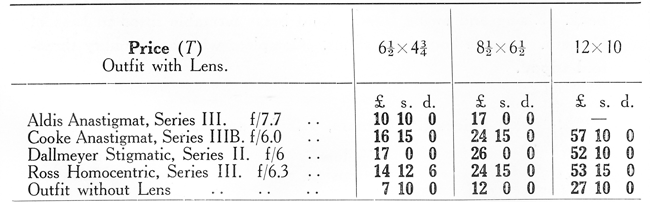 The Soho No. 5 camera was manufactured in circa 1935 by Kershaw and sold by Soho Ltd. of London England. Designed as a triple extension camera with a universal front. The camera was made of selected mahogany, solidly built and beautifully polished with lacquered brass fittings. It was made with best quality leather bellows with truncated corners. It featured double rack and pinion movement providing long extension, rising and swing front, reversing and double swing back, built-in solid brass turn-table, and reversible frame and a Thorton-Pickard time and instantaneous shutter with speed indicator and pneumatic release. The Soho No. 5 camera was made in three sizes including a 6 1/2 x 4 3/4 inch, a whole plate, 12 x 10 inch. Prices varied according to lens selection and camera size.