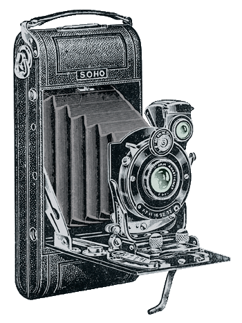 The Soho Beltrex affordable Camera de Luxe (for pictures 3 1/4 x 2 1/4 inches) was often referred to as the 'brother' of the Altrex, was manufactured by the Soho Ltd. Company in circa 1932. A workhorse of a camera also known for its detailed craftsmanship, the high-front Beltrex used a radar lever for focusing, a high-speed shutter (1/300 sec.) and featured top quality Kershaw Anastigmat and Ross Xpress Anastigmat lenses. The Soho Beltrex prices ranged from £4-11.
