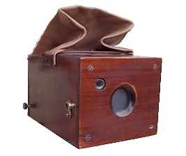 Manufactured around 1891 until 1895, it consisted of a mahogany box camera for 12 plates 6x8cm or 9x12cm. Designed with a leather changing bag on top. Original model was equipped with a simple guillotine shutter and single finder. In 1893 it was improved with two finders and a rotary shutter.
