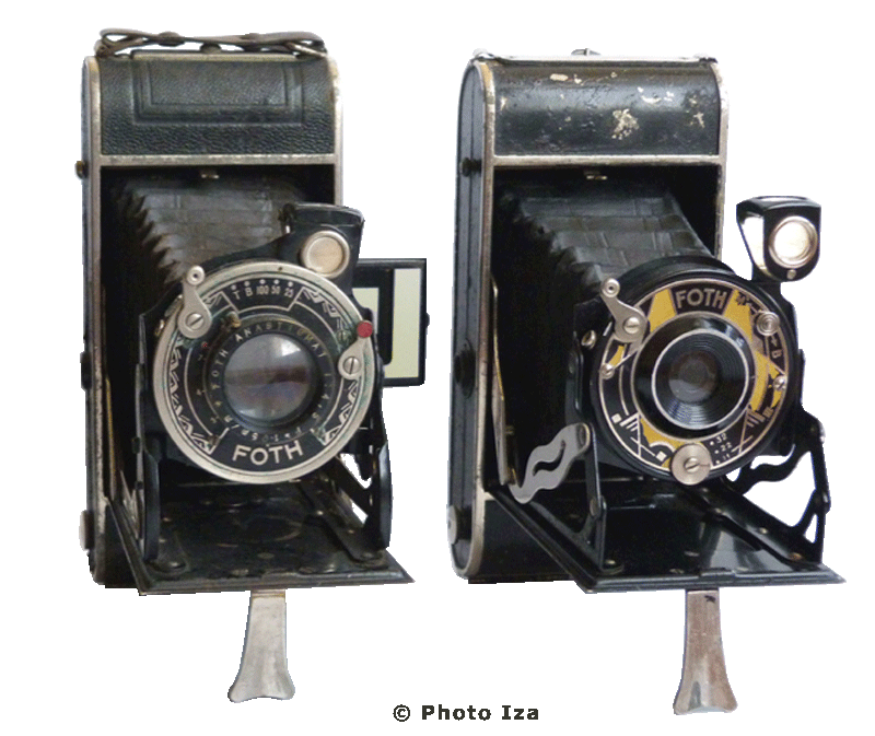 The Foth Spezial Camera was manufactured by C.F. Foth and company in circa 1935. It was constructed of metal and covered in leather. This was a self-erecting camera and most likely marketed as an inexpensive camera due to the lens and shutter combination. The camera was fitted with a fixed focus meniscus lens and the simplified shutter provided three speeds 1/25, 1/50 and 1/100 plus time and bulb. Early models featured a brilliant view finder and later models included a folding frame view finder.