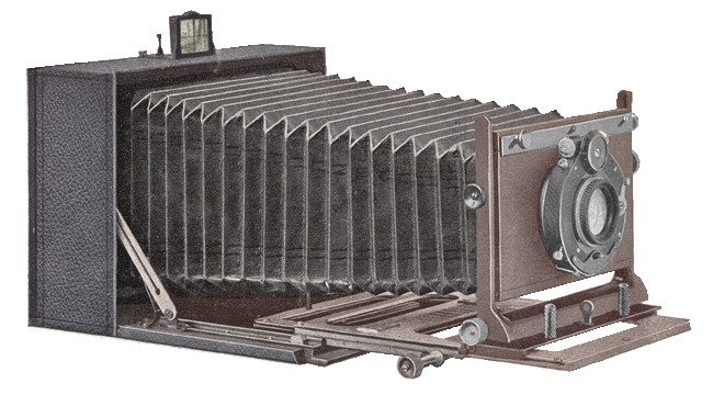The Rechteck-Primar camera was manufactured by the Bentzin camera company from c1912 to c1926. Rechteck-Primar" translates to "rectangular primary" referring to the shape and function of the camera. Constructed of wood with leather covering and a leather bellows. A light folding bed box camera for universal use. The camera design provides several adjustments including tilt forward and backward including rise and fall. The floorboards are made of brass dovetail so that they are not exposed to swelling. Made in 9 x 12 cm and 10 x 15 cm size. The 10 x 15 cm size can be adapter for stereo work. Fitted with either a Zeiss-Tessar or a Zeiss Doppel Amatar.