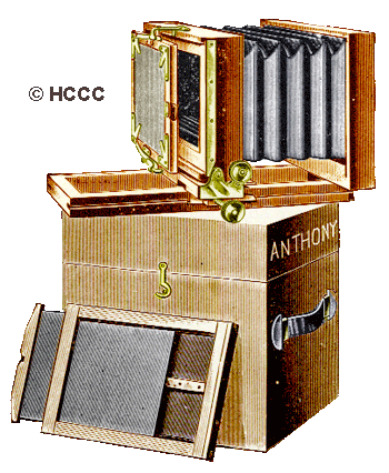 The NPA camera and equipment was manufactred by the E. & H.T. Anthony company from approximately 1886 to 1899. The was constructed of fine mahogany that was highly polished. Features included a patent swing back, a rising front, a folding bed patent clamp hooks to make the bed rigid, and extra front and stereoscopic partition. The metal work has the draw file finish similar to that on the finest mathematical instruments. By means of a plate on the side this camera, it can be reversed on the tripod and used to make a vertical picture. This is the same camera as used in our ONA Equipment.