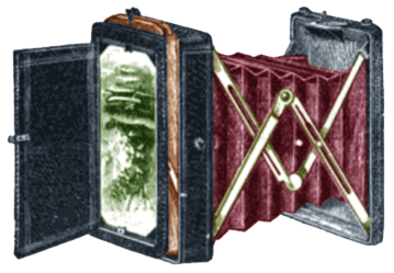 The Monroe Tourist Camera was manufactured by the Monroe Camera Company in circa 1897. Depicted is the Tourist camera no. 3 which takes 3 1/4 x 4 1/4 inch exposures. It was constructed of Aluminum and covered in black seal grain leather. It was fitted with a best quality Baush & Lomb single achromatic lens, two view finders and tripod sockets. It measures 1 3/4 x 4 1/4 x 5 1/4 inches when closed. Originally priced at $7.50.