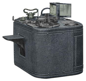 The No. 0 Graphic was fitted with a high speed Zeiss Kodak anastigmat lens, f6.3 and Graflex focal plane shutter providing speeds from 1/10 of a second to 1/500 of a second, including time exposures. The shutter has three aperatures for instanteous exposures 1/4, 3/4 and 1 1/2 inches. Constructed of selected mahogany and aluminum and covered in the best quality morocco leather. An eye-level designed folding sight finder is attached, that includes a small metal bound mirror that is able covert the camera into a deceptive angle camera, permitting the making of photographs at right angles. This camera measures 5 x 3 1/2 x 3 1/4 and weighs 25 ounces. It sold for $40.00 in 1914.