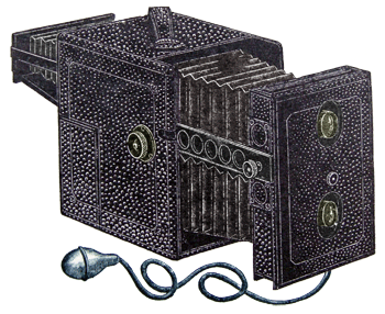 The Twin Lens Graphic Special Camera was introduced by the Folmer and Schwing Manufacturing company in 1904. Designed for use as a hand camera, so that the image can be kept into view up to and during the exposure. The compact design measures 9 x 7 x 9 1/4 inches when closed and weighs 6.25 lbs.. Constructed of the finest kiln dried mahogany, joint-locked and reinforced. Covered in best quality black grained leather and the exposed parts are finished in ebony and the metal oxidized.