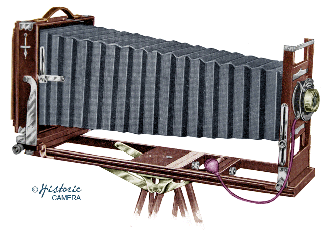 The Camera City View camera was manufactured by Seneca Camera Manufacturing Company from approximately 1907 to 1930. Designed for home portraiture and general viewing, but can be adapted for scientific or tripod work. The city view camera featured a double tounged bed, front and back rack and pinion fosucing, jarless back, extreme rise and fall front, leather bellows, and a detachable bed brace. A strong construction and a large front board aids in accommodating a complete range of large or heavy lenses. Originally made in a variety of sizes including 5 x 7, 6 1/2 x 8 1/2, 8 x 10, 11 x 14, 14 x 17, 16 or 17 x 20 and priced from $29.50 to $90.00. By 1925 only two sizes were available, a 5 x 7 and 8 x 10 inch.