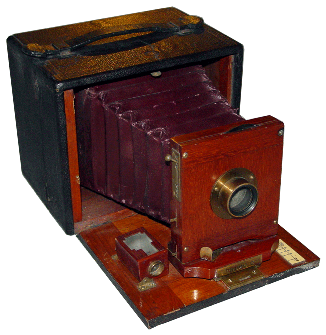 The Premo C camera was manufactured by the Rochester Optical Company from approximately 1895 to 1902. The lens and shutter are neatly built-in to the wood front. Fitted with a single achromatic or rapid rectilinear lens with rotating diaphragm and accompanied with the new safety time and instantaneous shutter adjsuted by a lever on teh side.