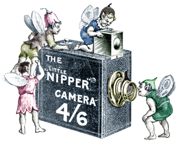 The Little Nipper Camera was manufactured by the W. Butcher & Sons company from approximately 1901 to 1920. Sold as an outfit, which including developing and printing supplies. The No. 1 little Nipper was a an inexpensive metal box camera, covered in leather with nickel fittings, and capable of taking images 2 3/8 x 1 3/4 inches. A removable finder, similar to the Brownie camera was available. The No. two Little Nipper was constructed the same as the No. 1 however, it was able to captured image 3 1/2 x 2 1/2 inches in size, on six plates or twelve cut films. It also included a handle on top for carrying. The No. 3 was introduced in 1902 and was even larger, capable of taking quarter plate exposures. The No. 1 was originally priced at 4/6, the No. 2 at 6/6 and the No. 3 at 8/6.