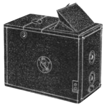 The Primus No. 9 Camera was manufactured by the W. Butcher & Sons Ltd. Company in circa 1898. It was a magazine twin lens camera that originally retailed for 50s. It is constructed of a mahogany body covered in real morocco leather. Designed with a full sized finder on top of the camera with a hooded cover. The magazine is capable of holding twelve quarter sized plates in sheaths. Fitted with a single achromatic view lens with iris diaphragm and a time and instantaneous shutter. A feature shows the number of exposures taken. The plates are changed by rack and pinion movement.