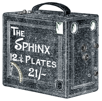 The Sphinx Box Camera was manufactured by the W. Butcher & Sons Ltd. company in circa 1902. Designed with many others of that time period as an in expensive magazine camera. It featured a large diameter achromatic fix focus lens and a time and adjustable instantaneous shutter. Two brilliant finders. The Perfect magazine changing system that accommodated twelve quarter plates and a recorder for numbering the exposed plates. Covered in morocco grained leatherette with solid leather handle. Originally priced at 21s.
