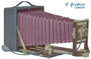 The Century Camera, Model No. 15 was manufactured by the Century Camera Company from approximately 1900 to 1902. Constructed of solid mahogany with dovetail workmanship and covered in fine black leather. Polished mahogany bed with piano hinge for stability. The brass hardware is highly polished and lacquered. This high quality made camera featured duel rack and pinion focusing with a long extension bellows, and a rising and falling front. A reversible back with automatic screen and wooden panel. A swing back and swing bed operated by a pinion with a century patent lock are provided. The camera is fitted with a Century rapid convertible lens and a Century Automatic, No. 1 shutter which operates instantaneous, time and bulb exposures. A brass bound, hooded and reversible three lens brilliant finder is provided for vertical or horizontal images. Made in a 4 x 5 inch or a 5 x 7 inch size. Originally priced at $27 and $34 respectively.