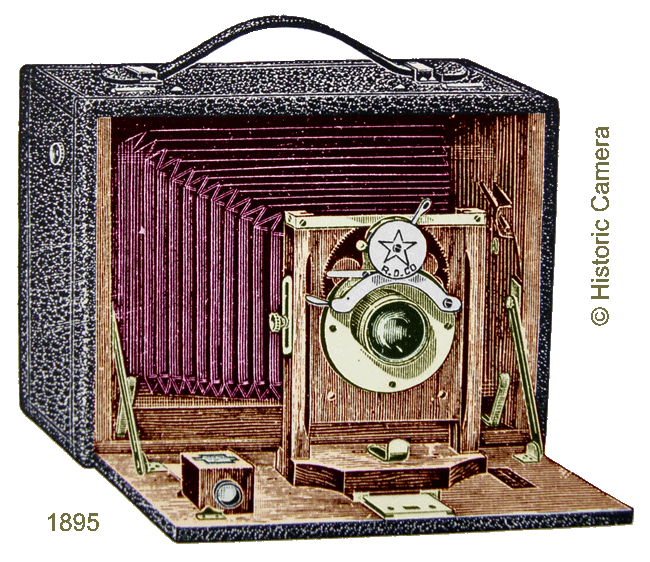 There were essentially four versions of this camera made. The 1892 version is the original as depicted in the top right corner and photo, and the 1895 version depicted on the very bottom of the page. The second version did not have a recess in the front and the third version looked more like the third version without the extra space on the sides. The first version is the rarest.