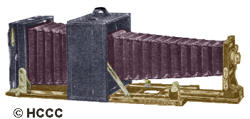 The Long Focus Century Grand was manufactured approximately from 1902 to 1907. Constructed of mahogany, brass fittings covered in leather. It has rack and pinion movements for rise and fall of front and vertical and horizontal swings an automatic clamp for holding the front board rigid at any desired position on the bed. A drop panel allows ready access to the ground glass and an improved method of adjusting the ground glass making it easy of replacement. Several improvements are also noted in the bellows one being the absence of sharp corners which adds to their durability.