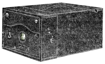 The Adams Hand Camera was manufactured by the Adams & Co. of London from approximately 1891 to 1896. Capable of taking 3 1/4 x 4 1/4 inch or 5 x 4 inch exposures on plates, Eastman's roll holder or cut films. The lens was a Ross Rapid Symmetrical F8 in a special mount capable of focusing from two yards to infinity. The shutter was made of metal with time and instantaneous settings with iris stops. It has rising and shifting front and double swing back. Two tripod bushes and screws are provided for tripod work. The detachable changing box holds twelve plates and is fitted with an exposed plate indicator. Priced at 15/- and 18/- respectively.