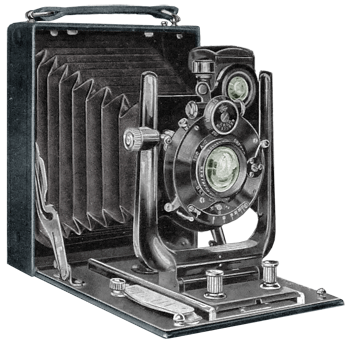 The Icar camera was manufactured by the Ica A.G. camera company of Dresden, Germany in from approximately 1912 to 1927. Designed for quarter plate exposures 3 1/4 x 4 1/4 inches on film packs or plates. This camera was constructed of aluminum composition and covered in seal grain leather. The front is designed in a U shape for rigidity and the front bed is reinforced with aluminum. Features included a rising and falling front operated by a screw adjustment, an extra large brilliant finder that is collapsible made with an indestructable metal mirror, spirit level, two tripod sockets, a 5 7/8 inch extension, large folding focusing hood, and focusing scale. The Icar camera was fitted with a Carl Zeiss Tessar lens F6.3 in a compund shutter. Originally priced at $57.00. The camera measures 5 3/4 x 1 13/16 x 4 1/2 inches and weighs 27 ounces.