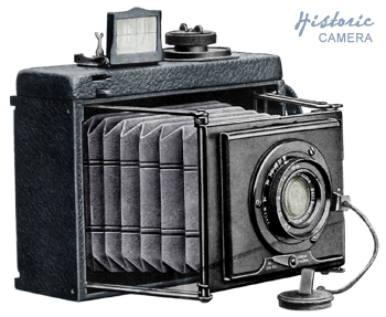 The Minimum Palmos Model A camera, also listed as no. 454, was manufactured by the Ica A.G. camera company of Dresden, Germany from approximately 1909 to 1922. It was a compact strut folding camera with a focal plane shutter designed primarily for outdoor work and able to take instataneous pictures in poor light. The original Minimum Plamos was introduced by Carl Zeiss. This camera was capable of taking 2 1/2 x 3 1/2 inch (6.5 x 9 cm)exposures on plates or film packs. Constructed of aluminum and covered in black seal grain leather. Features included a rising, falling and sliding front, a lever adjusted focusing lens tube, rigid fixed bellows extension with automatic locks focused at infinity, the Palmos focal plane shutter with adjustable speeds regulated and indicated on the outside. The rear is fitted with a large folding focusing hood that sldies on and off, a direct view finder mounted on top of the camera and two tripod sockets. The focal planes shutter provided speeds from 1/15 to 1/700 of a second. Fitted with a Carl Zeiss 1c Tessar f4.5. The camera measures 5 3/8 x 2 11/16 x 4 5/8 inches when closed and weighs 31 ounces. Originally pricing at $97.00.