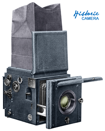 The Ica Reflex camera was manufactured by the Ica A.G. camera company of Dresden, Germany from approximately 1909 into the 1930s. Several variations were made through the duration of its production. This camera produced the popular quarter plate sized images 3 1/4 x 4 1/4 inches on glass plates. Other sizes included a 2 1/2 x 3 1/2, 3 1/4 x 5 1/2 and 4 x 5 inch. A large square focusing hood provided the photographer a direct view of the full sized image right side up until the time of exposure. The bellows extends 9 inches. Regularly fitted with a Carl Zeiss Tessar f4.5 lens with a focal plane shutter providing speeds from 1/15 up to 1/1000 of a second including time. Other lens included the Zeiss Triotar, sereis Ic, Dominar Anastigmat, Orix anastigmat or Distar. Graflex plate holders were able to be used. The camera measured 6 3/8 x 6 1/8 x 7 1/4 inches when closed and weighed 4 pounds 7 ounces.