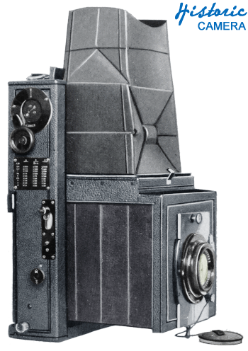 The Ica Folding Reflex camera was manufactured by the Ica A.G. camera company of Dresden, Germany in circa 1922. This camera was also called the Klappreflex camera. Two variations were made, the model A version was numbered 754 made in a 6.5 x 9 cm size and a model B numbered 755 made in a 9 x 12 cm size. Designed as a very compact reflex camera folding into a very flat size. This cameras features are similar to the regular folding reflex but it does not have a reversible back and has less bellows extension. Regularly fitted with a Carl Zeiss Tessar f4.5 lens or teh Triotar f3.5 lens. The focal plane shutter providing speeds from 1/15 up to 1/1000 of a second including time. The model A camera measured 8 1/4 x 5 3/4 x 2 7/8 inches when closed and weighed 3 pounds 8 ounces. The model B camera measured 10 x 7 1/4 x 3 inches when closed and weighed 4 pounds 11 ounces.