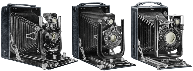 The Trona camera was manufactured by the Ica A.G. camera company of Dresden, Germany from approximately 1911 to 1926. Several variations were made during its production run. This hand camera is also referred to in Ica catalogs as number 110, 210, and 212. Capable of taking pictures 3 1/4 x 4 1/4 inches on film packs or on glass plates. It was constructed of aluminum and covered in fine black grain leather. Features included a rising and falling front operated by a screw adjustment. The double extension black leather bellows extended 10 3/4 inches and automatically locks into place. It is equipped with an extra large brilliant finder that is collapsible, reversible and designed with the Ica indestructible metal mirror. A spirit level and two tripod sockets are also included. The Trona was fitted with ether a Hekla double anastigmat F6.8 or a Amatar double anastigmat lens F6.5 or F4.5 lens. The shutter was a either the Ica model XI auto shutter or the compound type capable of speed from one to 1/250 of a second, including time, bulb. Fitted with the Hekla lens the camera was priced at $42.50 and with a Amatar lens it was priced at $66.00. It measured approximately 5 3/4 x 2 x 4 3/8 inches when closed, slightly varying by model version and weighed approximately 34 oz.