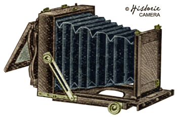The Waverley Camera was sold by the Benetfink and Company Ltd. photo supply depot in circa 1898. A traditional English camera constructed of polished Mahogany wood. The Waverley featured a double extension front adjusted by a rack and pinion mechanism. The bellows were made of real leather. The back was reversible and provided swing with a ground glass focusing screen. Two sizes were available including a quarter plate and a half plate. This camera was priced at 30s 0p for the quarter plate size and 47s 6p for the half plate. The Lens and shutter were sold separately. The Waverley camera set included a single achromatic lens with rotating diaphragms and a time and instantaneous shutter priced at 42s for the quarter plate and 66s for the half plate.