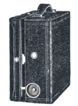 The Reversible Swing Back Bullard Cycle Camera was manufactured by the Bullard Camera Company in circa 1901. It was a well made hand camera that featured an automatic reversible swing back mechanism as depicted in the illustration. By pressing on the large button the rear section automatically jumps back. It could be locked at any desired angle by turning the locking thumb on the bottom of the case. It was fitted with a Rapid Symmetrical Lens, a Rauber & Wollensack double valve pneumatic shutter with time bulb and instantaneous adjustment up to the 1/100 of a second. It also featured a rising, falling and sliding front, and a reversible brilliant finder. Sold