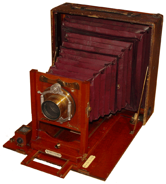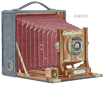 The TelePhoto Cycle Poco "D" was manufactured c 1891 by the Rochester Camera manufacturing Co. in Rochester, NY. Constructed of Polished Mahogany box, covered in the finest black leather, with handle, Red Morroco leather bellows, cloth lined. Metal work is polished and lacquered brass. Rack and Pinion focus, double extension, with removable spring actuated plate holder. Baush & lomb lens in auto victor shutter. Some have storage in rear for extra plates. It was available in multiple sizes including 4 x 5; 5 x 7; 6 1/2 x 8 1/2; and 8 x 10.