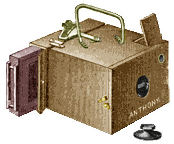 Patented in 1883. This detective camera sold through Anthony was advertised as the lightest, neatest and most compact camera ever made. The camera is compact with the size being only 4 1/2 x 8 1/2 x 6 inches. Designed to be carried in the hand for specific known distances. A focusing lever located on top of the camera will bring the image info focus. Equipped with a view finder for showing the position of the image on to the plate. The shutter button is located on the right and upon pressing it the exposure to the plate is instantly made. Development accomplished afterward in the usual manner. Camera available in two sizes for plates 3 1/4 x 4 1/4 and for 4 x 5 plates. Cost is $55 and 60 respectively for 1883.