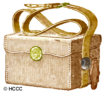 The Lilliput Camera was manufactured by E. & H.T. Anthony. It was advertised as the handiest lightest and most easily handled detective camera ever put upon the market. In outward appearance it resembles a small hand bag being made of fine sole leather and fitted with a sling strap for convenience in carrying. It occupies a space only 4x4x6 inches and notwithstanding its small bulk carries six double holders which may be filled with glass plates or films and which are emptied and refilled by the operator himself precisely as if in a regular camera. The lens covers an angle of about 60 degrees and is adjusted to universal focus, always in readiness for use. The camera is worked without taking from the case and all mechanism is entirely concealed from view. The size of picture obtainable is 2 inches square and they may be either time or instantaneous exposures at will of the operator, the shutter having an adjustment for either the one or the other. Price including carrying case and strap, camera, lens, six double plate holders, twelve kits for same nine dozen celluloid films and ruby lantern $25.00 in 1891.