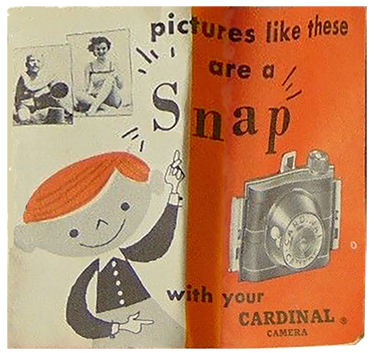 Cardinal Creations Corporation, sometimes referred to as the Cardinal Camera Corporation was a manufacturer of inexpensive bakelite cameras founded in circa 1949 and produced cameras in the 1950s. The camera boxes were marked with Cardinal Creations Corporation located at 13-05 44th St, Long Island City, New York. Anther reference stated an address at 36-12 34th Street, Long Island City, NY but I could not verify. Another advertisement indicates that the company provided marketing services for electric saw attachments.