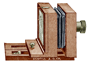 The Ne Plus Ultra Camera outfit was manufactured by Scovill Mfg. Co. from approximately 1881 to 1890. Constructed of wood that was either stained or painted black (ebonized) with black rubber bellows and featured a single swing, removable front, brass hardware and folding platform. Available in 4 x 5, 5 x 8, 8 1/2 x 6 1/2, and 8 x 10 sizes.