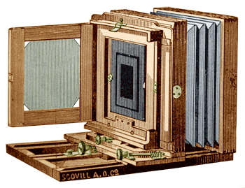 The Imperial Camera was manufactured by the American Optical Co. as early as circa 1871. This camera was a standard for a period of time for American Optical. The 1880s camera depicted was constructed of fine Mahogany, India rubber bellows, double swing back, swinging ground glass, lever focusing adjustment, and V-shaped guides on the platform. The camera can be used for all single portraits up to 8 x 10 and can accommodate 4-4 tube lens assembly. Available in sizes 8 x 10, 10 x 12, 11 x 14, 12 x 15, and 14 x 17. Pricing ranged from $40 to $100 dollars.