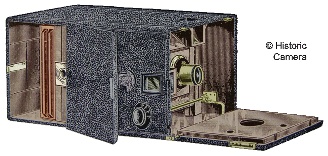 Description: The Premaret camera is in reality a miniture form of the premier camera. it has swing back, and rising and falling front, the working parts of which are entirely in the camera. Only comes in 4x5 size.