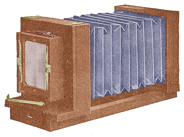 c 1915. The ROC postcard camera was a commercial camera specifically designed for taking postcard images. It was a well constructed strong and stable camera. It was moderately priced and did not contain many features for adjustments. However it did have the capability to accommodate a large array of reversible back sizes including 3 1/4 x 4 1/4, 3 1/4 x 5 1/2, 4 x 5, or 5 x 7.