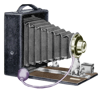 The Pocket Seneca No. 29 was manufactured by the Seneca Camera Manufacturing Co. and introduced in 1909. Designed as a compact instrument that fits into a coat pocket weighing only 19 ounces. It was simple enough that a beginner could use it. Constructed of wood with dovetail corners and exposed areas finished in ebony with the oustside covered with walrus grain leather. The metal work was nickel plated brass and highly polished. The bellows were made of leatheret and lined with gossamer cloth. Features included a rigid metal front, reversible view finder, meniscus achromatic lens or rapid rectilinear lens, Seneca Uno shutter with bulb and tube attachment, rear ground glass for focusing and two tripod sockets. Takes 4 x 5 inch size images on film pack adapters. Priced at $7.50 when fitted with the meniscus lens and $9.00 with the R.R. lens.