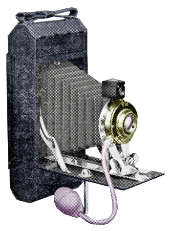 The Folding Pocket Senco No. 3 was manufactured by Seneca Mfg. Co. beginning in 1912. The introduction of the Senco line was a departure into the roll film abandoning plates and cut film. The Senco's were made entirely of aluminum with no exposed hinges. Covered in seal grain leather with nickel plated hardware. The No. 3 was recommended for snap shot work and capable of taking twelve exposures 3 1/4 x 4 1/4 inches in size without reloading. The camera included a rising and falling front, reversible brilliant finder and two tripod sockets. The basic camera was fitted with a meniscus achromatic lens and No. 1 Uno automatic shutter with bulb and tube. Rapid rectilinear or astigmatic lens option were also available. Original prices ranged from $15.50 to $47.00.