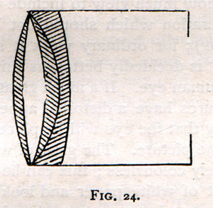 and distortion, and for such a large aperture have a wonderful depth of focus, with an extremely flat field. Within the last few months Mr. Dallmeyer has introduced a rectilinear or nondistorting single lens, which works at a large aperture, which is absolutely free from distortion, without astigmatism, and a very flat field (fig. 24).