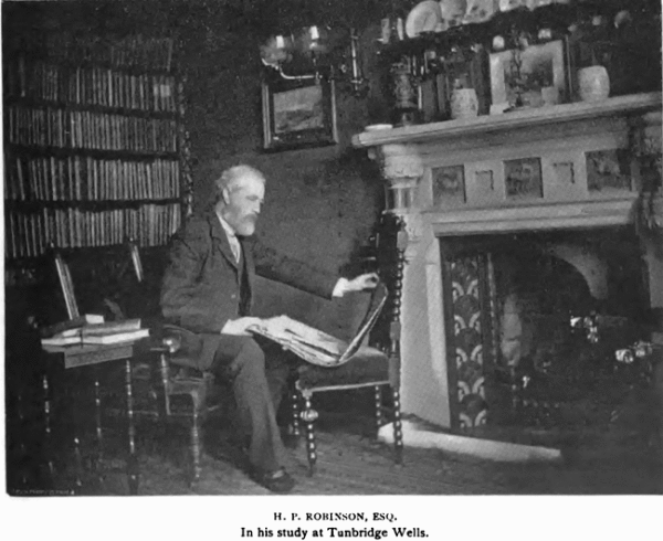Born in the English enclave of Ludlow, Shropshire on July 9, 1830, Henry Peach Robinson was the eldest child of John and Eliza Robinson. His father was the Master of the National School of the Church of England. From an early age, the young Mr. Robinson had artistic inclinations, but sadly, Ludlow did not offer any formalized courses of study. Therefore, Mr. Robinson acquired his artistic education by working for several booksellers and printers throughout Ludlow, Leamington, and London.