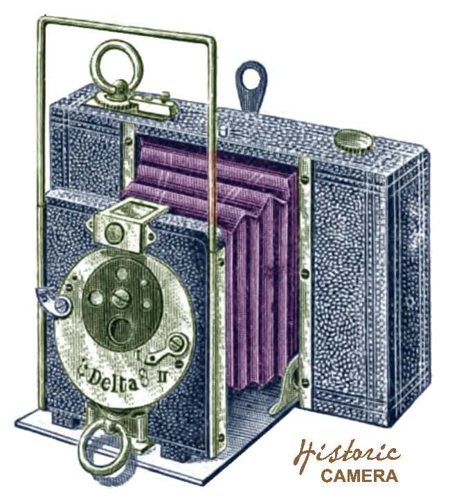 The Puck camera was offered by Rolff & Hackenberg of Hamburg and manufactured by J.C. Wilkins & Co. of London. The camera was designed to capture 2 1/4 x 2 1/4 inch sized instantaneous exposures on roll film. It was constructed of mahogany wood and aluminum with a black grain leather covering. Hardware fittings were made of brass. The camera measured 6 x 3 1/2 x 1 1/4 inches and weighed 19 ounces. It originally sold for 40 shillings.