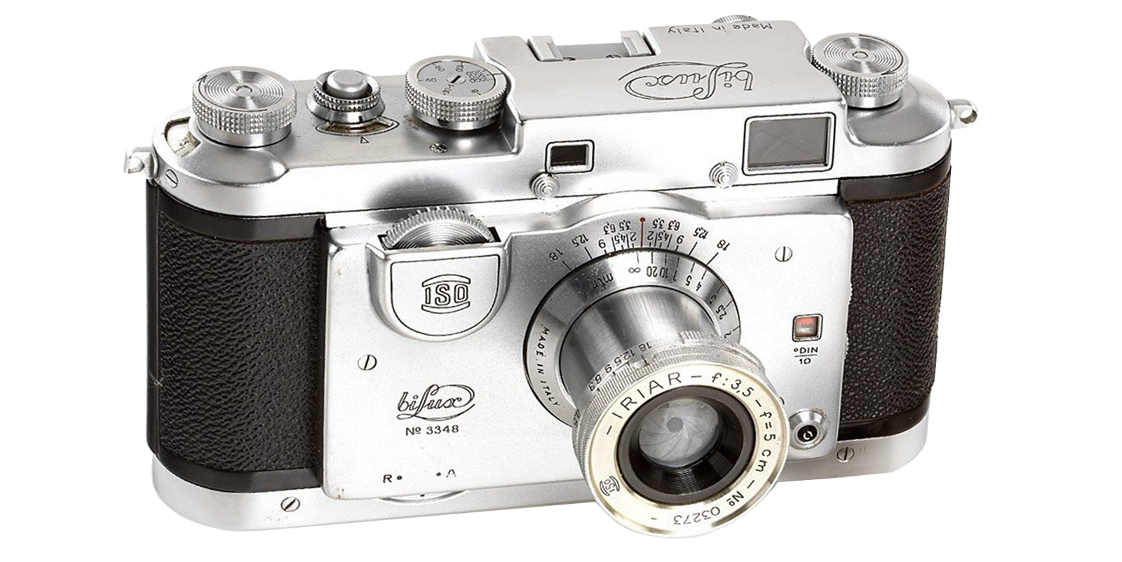 The Lux Camera was manufactured by ISO (Industria Scientifica Ottica S.R.L.) of Milan Italy in circa 1950. The Bilux was the second camera produced by ISO, similar to the Lux 35mm coupled rangefinder camera. It was fitted with a 50 mm f/3.5 Iriar screw mount lens in a focal-plane shutter with cloth blinds, giving speeds from 1 to 1/1000 second, plus 'B'.