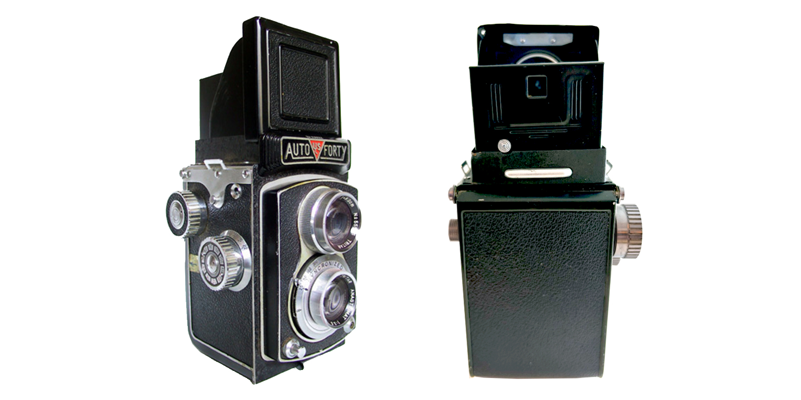 The Auto Forty camera was designed, marketed and sold by the United States Camera Corp. of Chicago Ill in circa 1950s. It was manufactured in Japan. It was a good quality Twin Lens reflex camera that captured 6x6cm exposures on standard no. 120 roll film. It was fitted with a f3.5 8cm Tritar Anastigmat lens and a variable speed shutter providing speeds of 1/25, 1/50, 1/100, and 1/300 plus B. Other features included rack and pinion focusing, synchronized shutter, automatic film stop and an exposure counter.