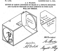 1840 Alexander S. Wolcott invented a Daguerreotype camera that used a telescope-like mirror instead of a lens to concentrate light on the photographic plate. Wolcott licensed his camera design to Richard Beard, who opened the first portrait studio in Europe. This design is also important because it is considered to be the first American photographic patent. |